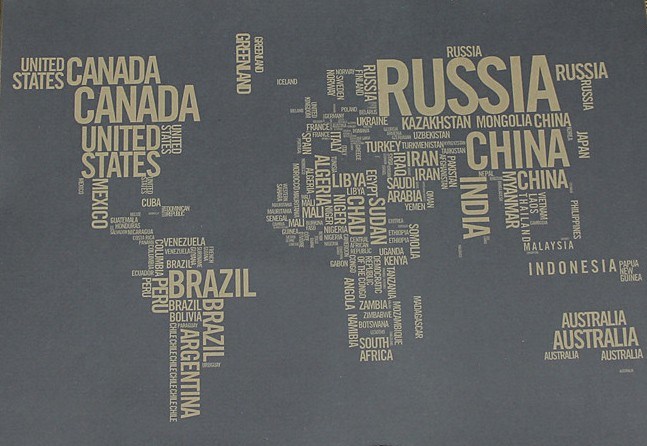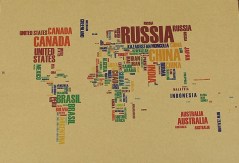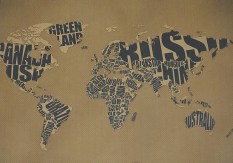№3 - Декоративная карта Мира. Бежевый фон, цветные надписи
