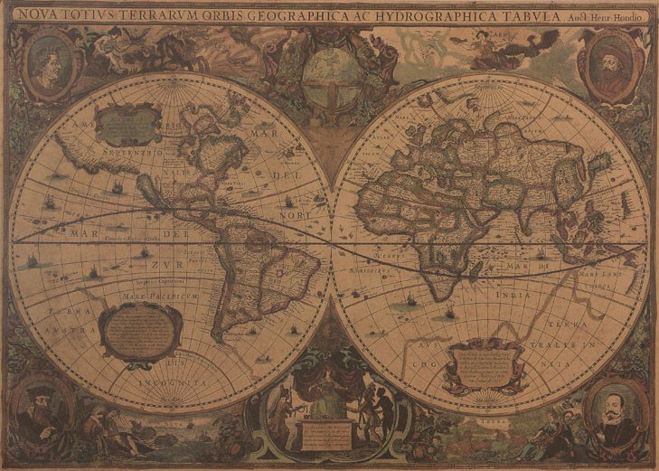 №3 - Старинная карта Мира. Репродукция карты мира. Опубликована: Амстердам, 1630 год. Автор Hendrik Hondius . "Nova totius Terrarum Orbis geographica ac hydrographica tabula"