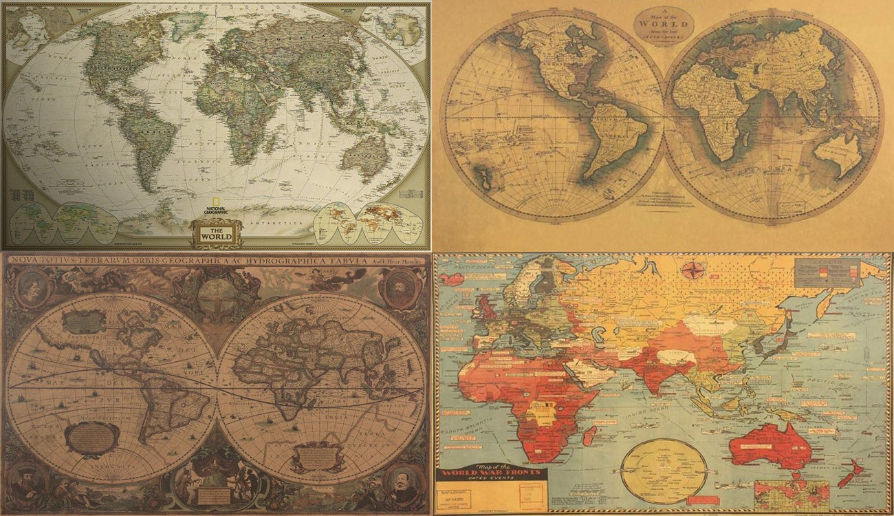 Старые карты Мира сделают Ваш интерьер непохожим ни на один другой. Ретро карты Мира еще и могут быть отличным подарком!