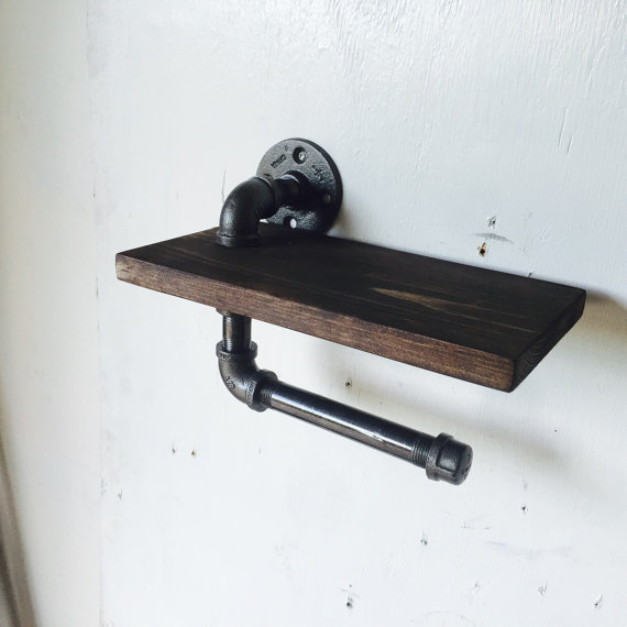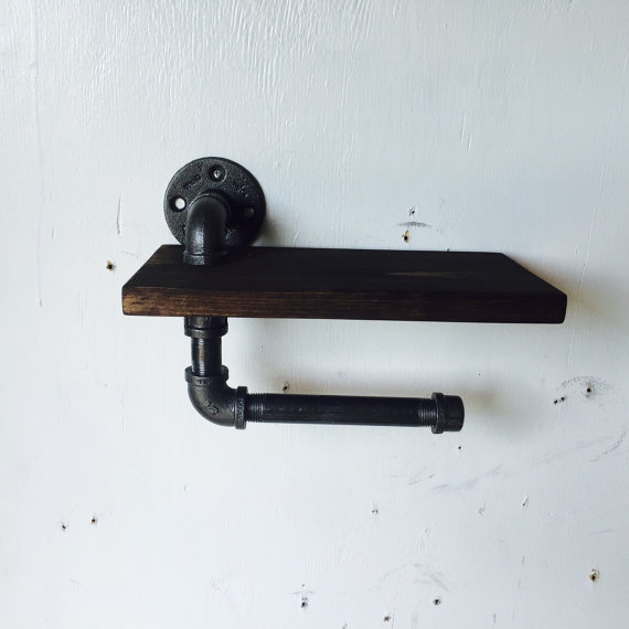 Уникальный держатель для бумаги с полочкой. Дизайн этого лофт аксессуара продуман до мелочей. Массив сосны надет на водопроводную трубу, и первое, что заставляет удивиться - как полочка держится?