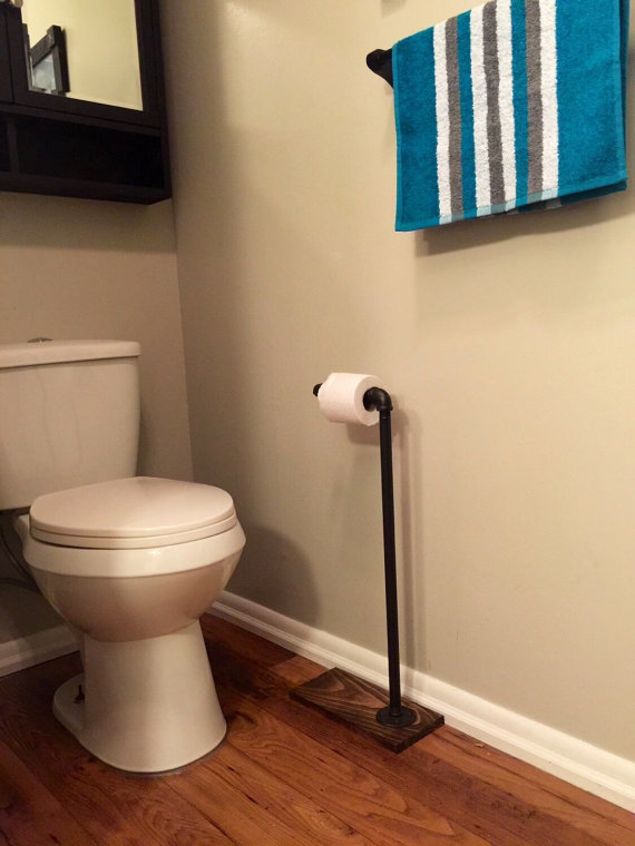 Такой держатель для туалетной бумаги изготовлен и массива сосны и водопроводных труб. Цвет материалов Вы можете выбрать на свое усмотрение. Элегантность, сдержанность и оригинальность в этом изделии.