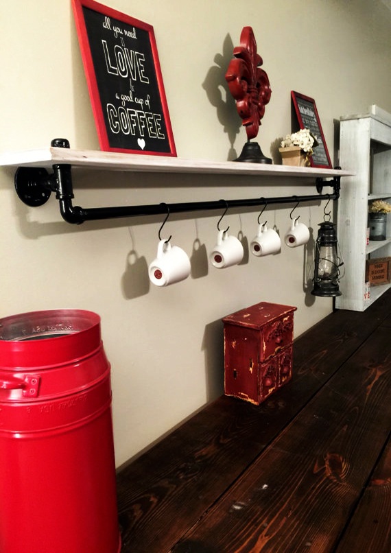 Одна из дизайнерских вариаций на тему: рейлинг и полка воплотились в Полке для кухни ЛОФТ. Такая полка будет уместна и ванной комнате благодаря многофункциональности рейлинга. Натуральное дерево и металл – что может быть органичнее. Полки для кухни Лофт, Стимпанк, Индастриал – все эти стили олицетворяют данную конструкцию.
