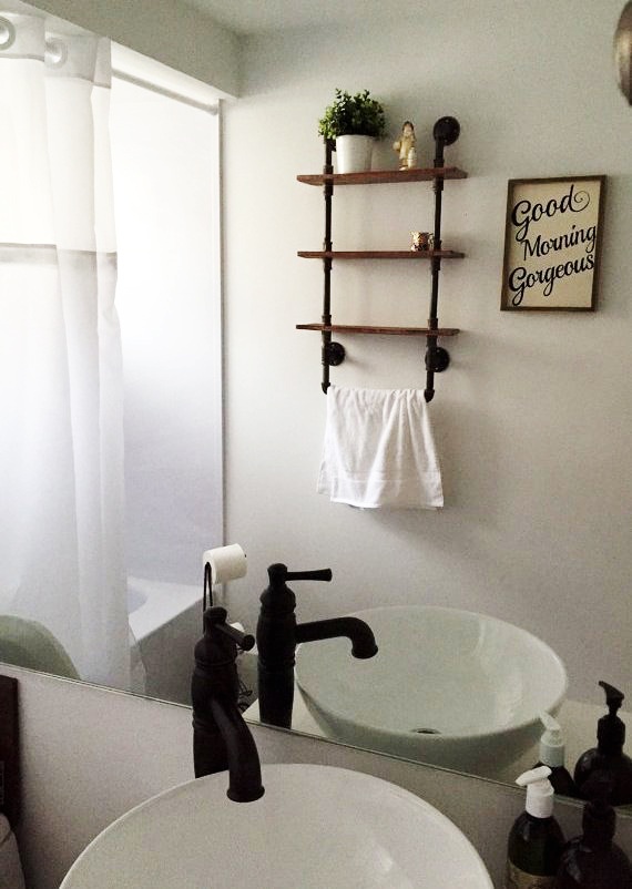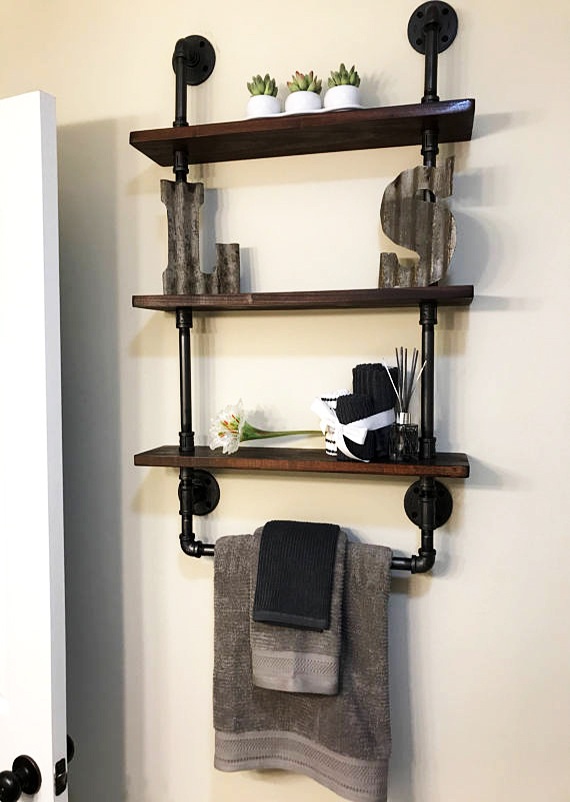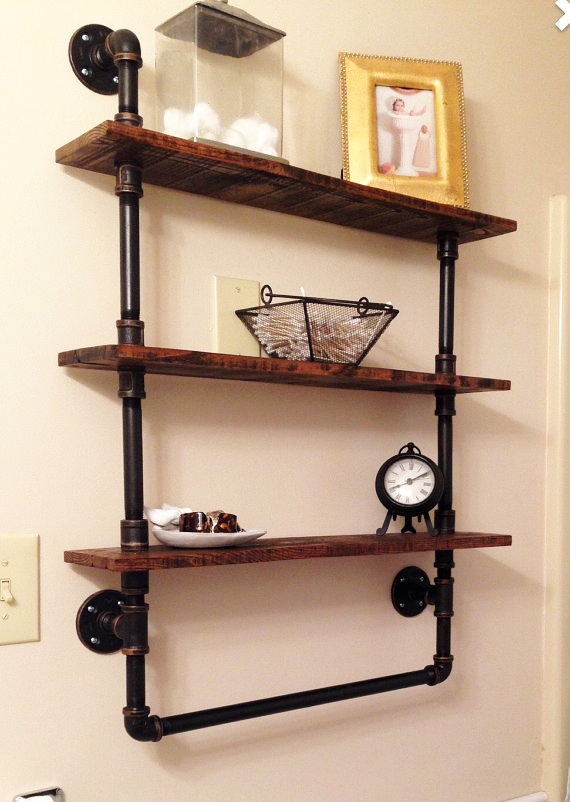 Полки Лофт купить в любом цвете по нашей палитре можно на заказ. Полка с рейлингом будет служить как небольшой стеллаж в ванной или на кухне. Повесьте на рейлинг крючки и он сможет уместить много нужных вещей.