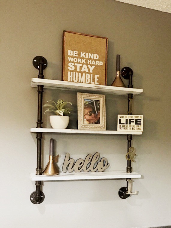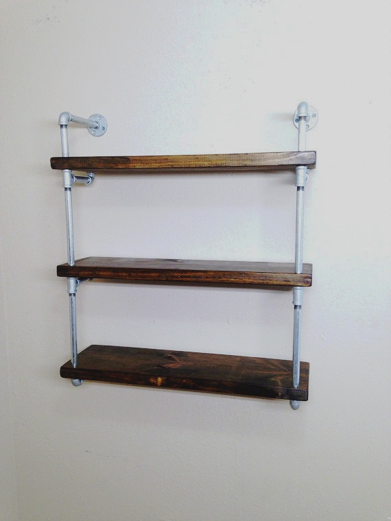 Дизайнерская книжная полка из 3 поверхностей. Трубы пронизывают дерево, образуя бортики, которые будут уместны для книг. Не знаете чем заполнить и декорировать стену? Дизайнерская книжная полка – отличное решение для любого помещения!