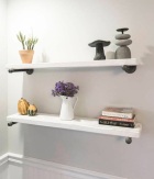 Полку в стиле ЛОФТ (купить или заказать) можно на двух или трех креплениях поддерживающих (трубах). На трех креплениях имеет смысл делать, если будет очень большая статическая нагрузка на полку (книги, гантели) или Вам эстетически нравится больше именно 3 крепления. В других случаях, до длины 100 см (из функциональных соображений) подойдет 2 трубы.