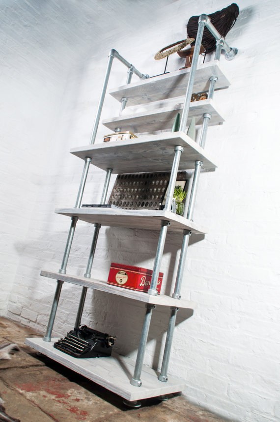 Стеллаж для книг в стиле Loft из металла и труб. Это «неубиваемая мебель» за счет качественных и натуральных материалов.