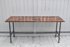 Деревянный стол в стиле Лофт производится из натурального массива сосны и покрывается защитными составами для древесины. Это обеспечивает поверхности стола износоустойчивость и защиту от жидкостей.