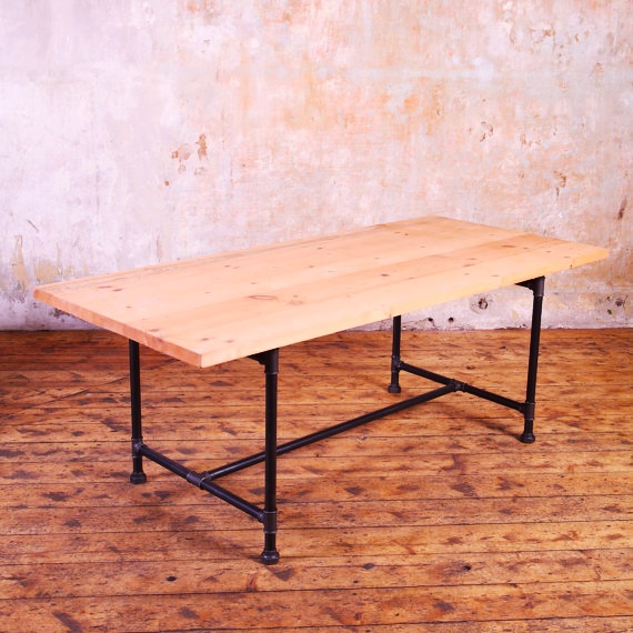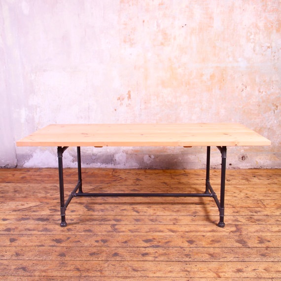 Обеденный стол Лофт из массива сосны и водопроводных труб. Стол можно выполнить как из цельного массива клееного или из досок, между которыми будут видны промежутки. Цельный массив хорош тем, что пыль, грязь можно протереть и стол будет снова чист.