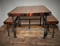 Лофт стол барный состоит из массивной столешницы толщиной 4 см, металлических уголков, подчеркивающих индустриальность конструкции и стального основания. Эта композиция из стола и скамьи, несомненно, будет шикарно смотреться в любом баре или ресторане. Барные столы в стиле Лофт мы изготавливаем из массива сосны. Вес стола зависит от размеров, ориентировочно 25-35 кг. Лофт стол барный на фото квадратной формы, другие формы и размеры можно выполнить по требованию заказчика.