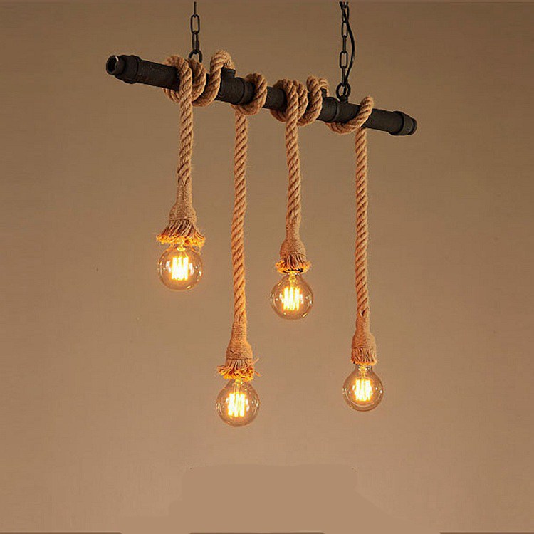 Веревочная люстра из 4 подвесов, труба 50 см – 5500 руб.