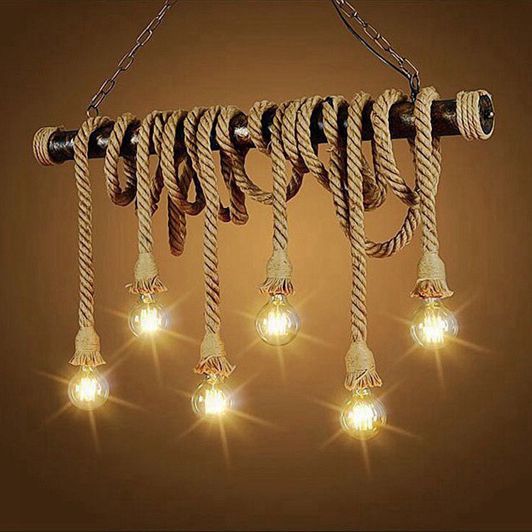 Веревочная люстра из 6 подвесов, труба 100 см – 7500 руб.