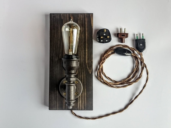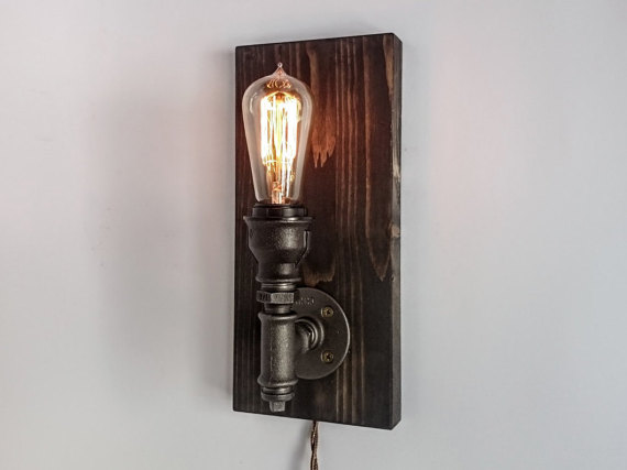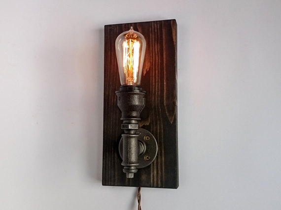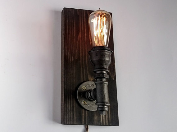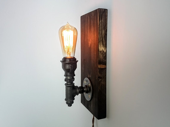Настенный светильник из труб в стиле loft. Изготовлен из водопроводных труб и деревянного основания.