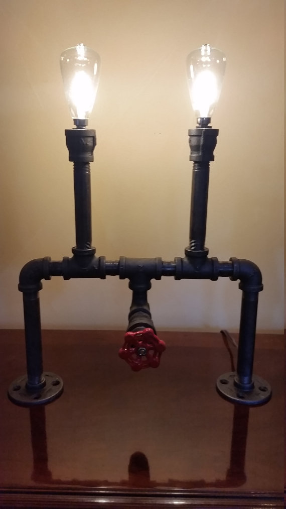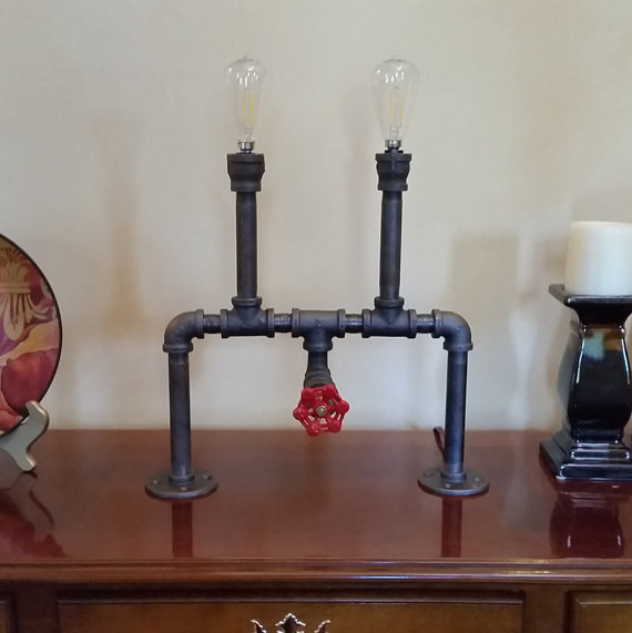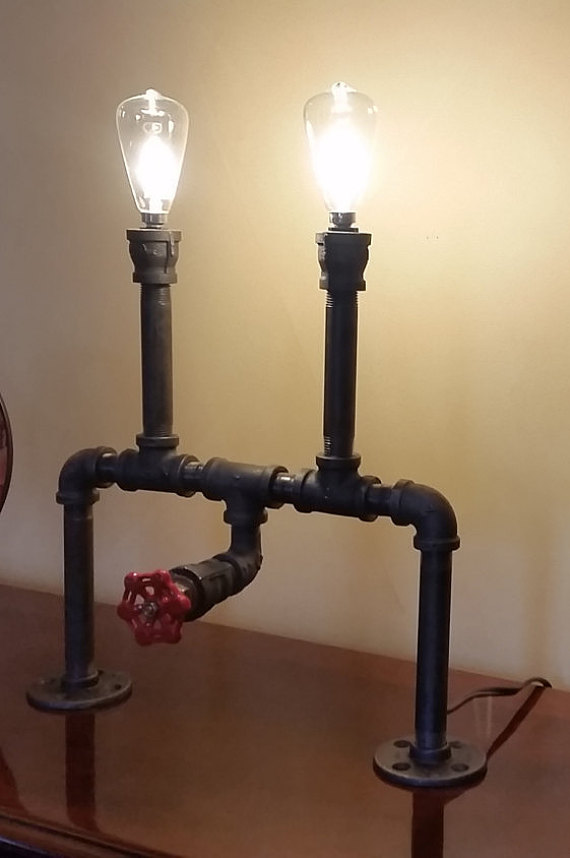 Симметричная лампа из водопроводных труб с интересной деталью – краником.