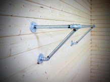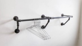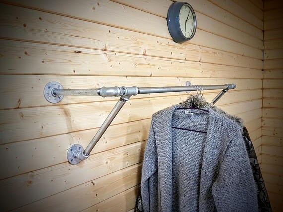 Настенная дизайнерская вешалка выполнена из стальных труб (водопроводных). Многофункциональна: ее можно дополнить крючками для одежды или вешать одежду на «плечиках».
