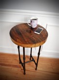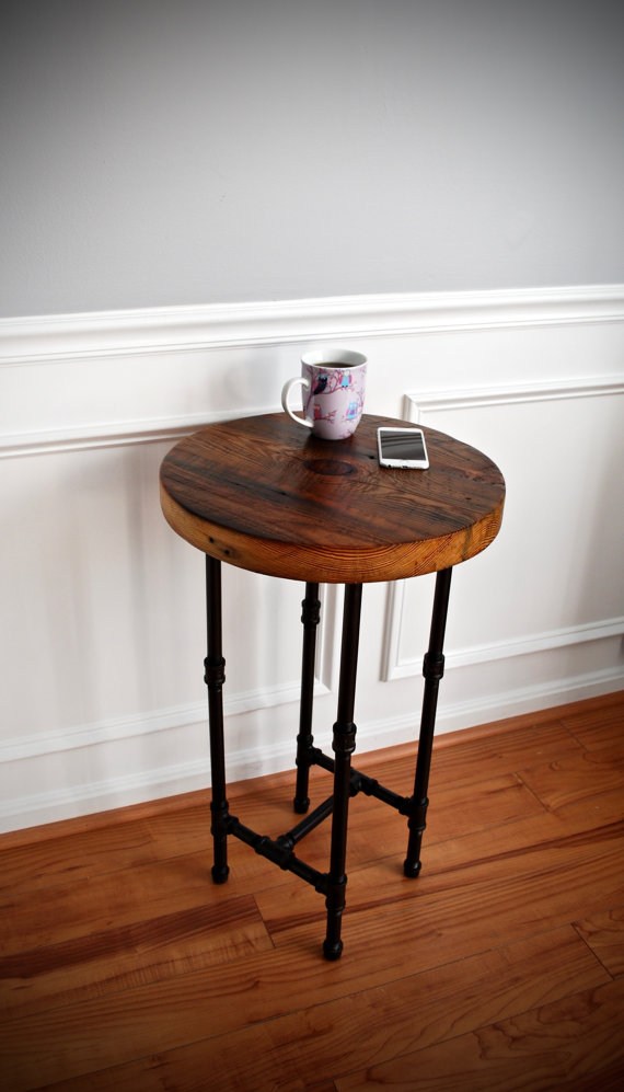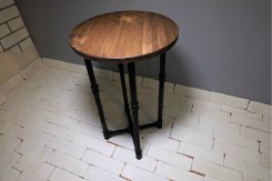 Дизайнерский круглый стол из массива дерева. Ножки выполнены из металлических труб. Защитное покрытие - масло или лак – обеспечит максимальную защиту от жидкости и механических повреждений. Диаметр столика указан в соответствии с первым фото.