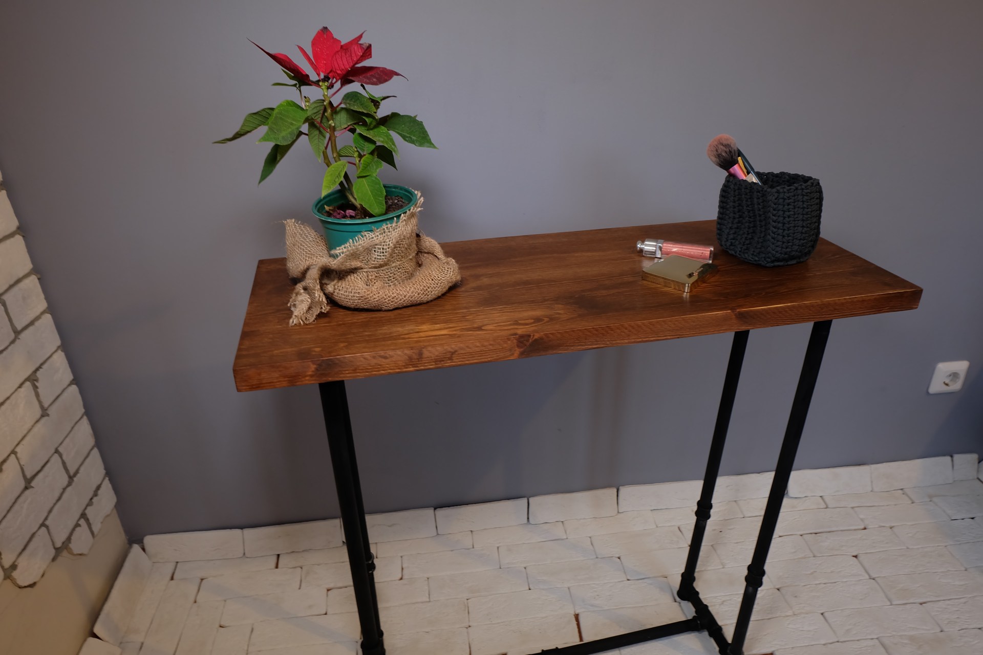 Консоль Лофт из стальных труб и массива сосны. Она может использоваться и как туалетный столик в стиле Лофт. Такая консоль Лофт будет уместна в прихожей для сумок или в гостиной, как журнальный стол. Консоль Лофт купить можно по Вашим размерам. Покрытие износоустойчивое, производственное, обеспечит минимальную стираемость столешницы. Мы ручамся за качество!