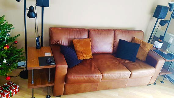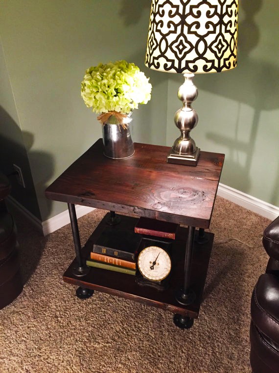 Прикроватный столик Лофт. В этом столике трубы крепятся к дереву, не пронизывая его, и выглядят как колонны, основательно. Изделие покрыто маслом для дерева или лаком, что обеспечит устойчивость к жидкости. Туалетный столик Лофт (или прикроватный столик Лофт) выполним по индивидуальным размерам и любой цветовой палитре. Необычный столик не оставит никого равнодушным и дополнит любой интерьер.