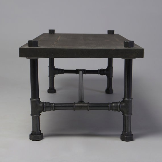 Журнальный стол Лофт из массива дерева и стальных труб, диаметром ½, ¾ или 1 дюйм. Через столешницу прямоугольной формы насквозь проходят трубы. Дерево покрыто маслом или лаком. Журнальный стол Лофт (цена может быть изменена в зависимости от размеров) может быть как стандартных размеров, указанных в характеристиках, так и по усмотрению заказчика. Такой стол будет идеален для гостиной, где приятно выпить чашечку чая в компании друзей.
